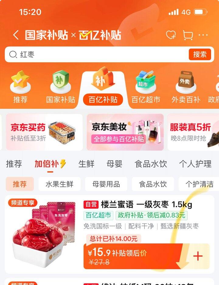 京东首页点击百亿补贴,再点击加倍补,找到它加购