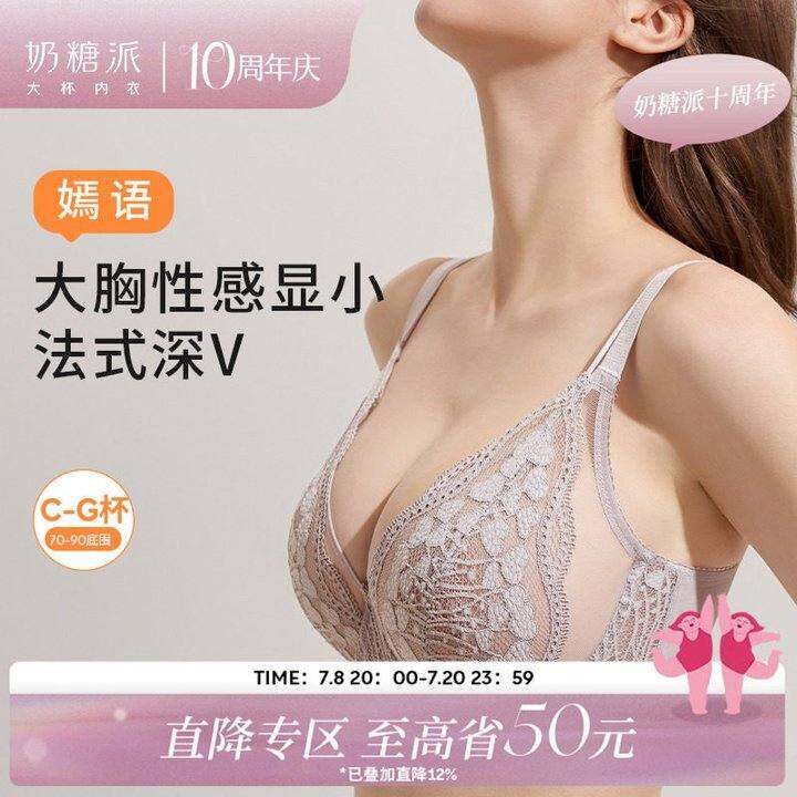 奶糖派大胸显小内衣女嫣语2.0夏季超薄法式蕾丝性感文胸女士胸罩