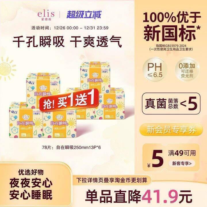 她研社卫生巾39元5件:
