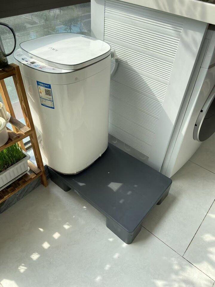 再也不用手洗袜子了,小洗衣机太方便了,就是装修没有预留上下水,买各种配件折腾好几天。打算旁边再加一台洗内衣。一开始怕脱水的时候晃动,洗的时候发现多想了,脱水都没什么声音,机身纹丝不动。