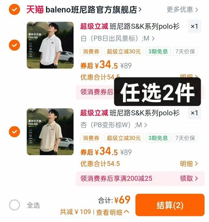 任选②件💰69,单件🈴34.5/件,