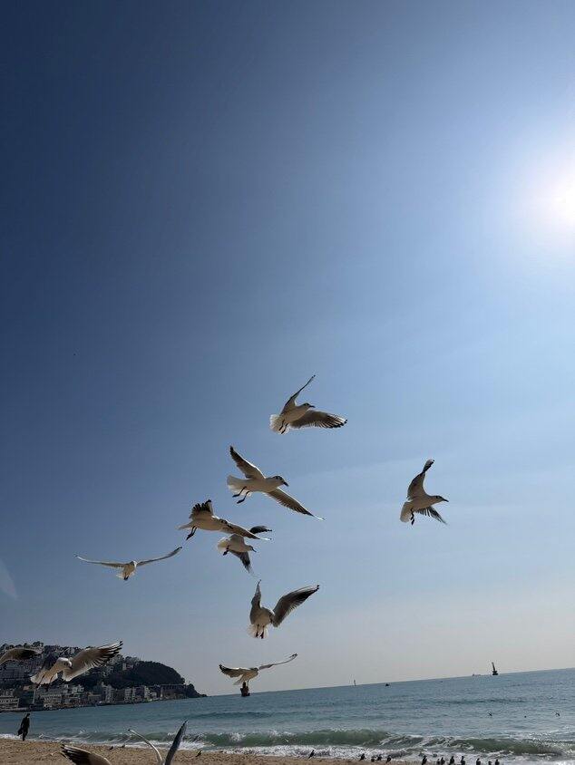 讲真刚到釜山,和“城会玩”的首尔落差还挺大。但在见到蔚蓝色大海的时候,一切都值得了!海怎么这么蓝~海鸥怎么那么多~小火车、胶囊火车、海边木栈道花头真多,人少景美又温暖!