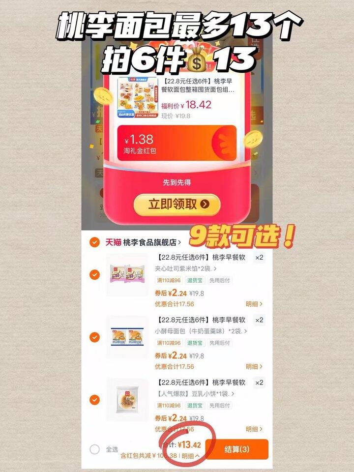 拍6件💰13最多12个 酵母面包/紫米吐司/蛋皮卷都有!