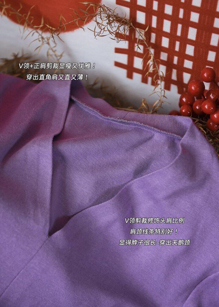 V领剪裁修饰头肩比例 肩颈线条特别好! 正面看腰细一圈,侧面藏住小肚腩~秒变纸片人,穿出S型曲线~