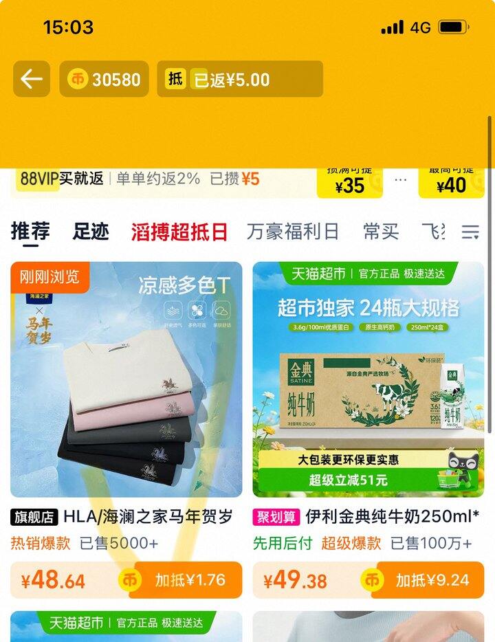 弹淘礼金,点击商品右上方...,淘金币-足迹,找到它加购