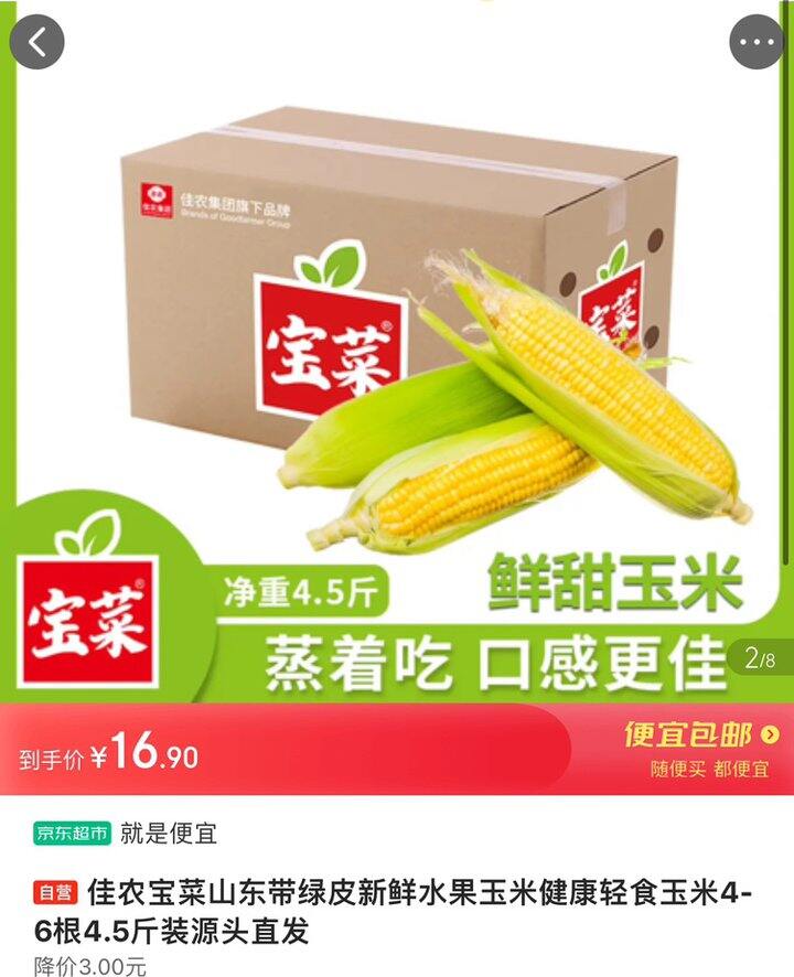 佳农宝菜山东带绿皮新鲜水果玉米健康轻食玉米4-6根4.5斤