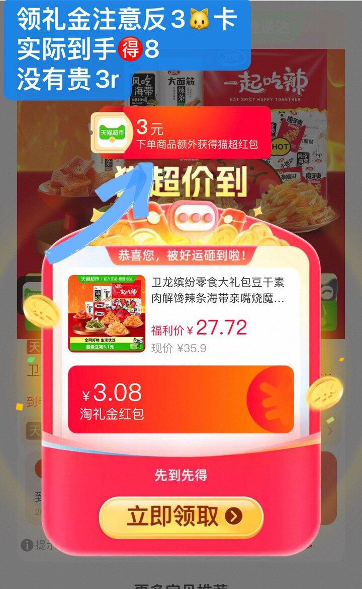 🪄领礼金后返回领6圈(领礼金页面显示返3猫卡)