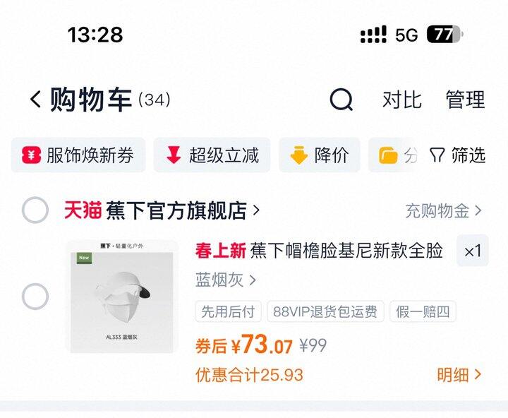 蕉下脸基尼防晒口罩丨73