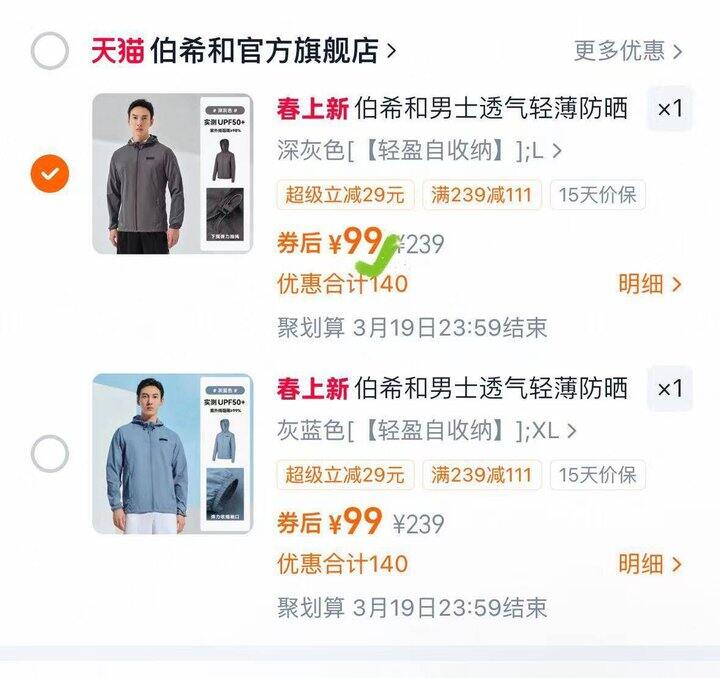 伯希和户外冰丝防晒衣多款任选,叠天降💰64.7