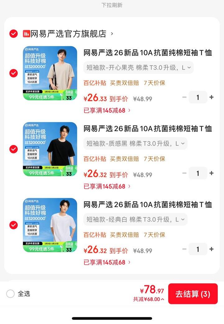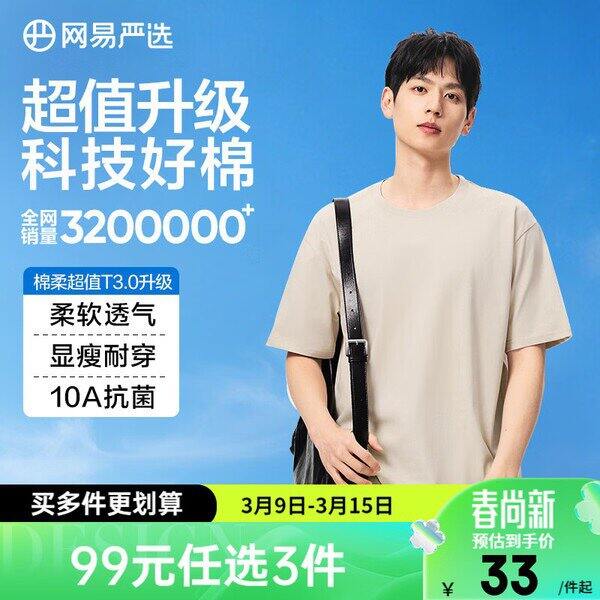 网易严选10a抗菌纯棉T丨26.33