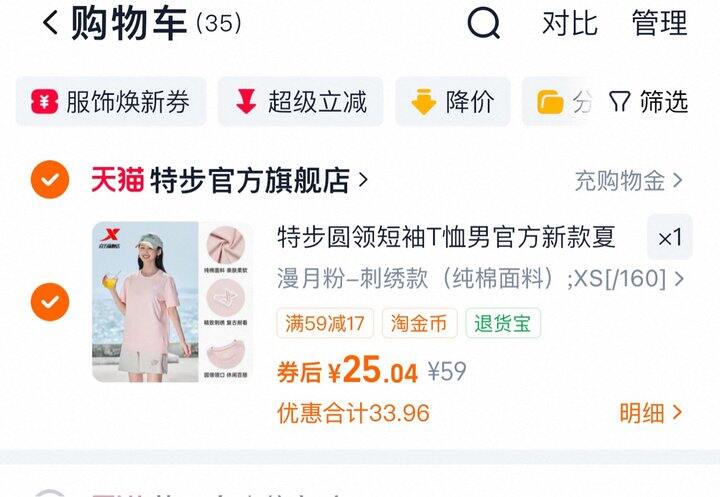 特步纯棉T恤丨25