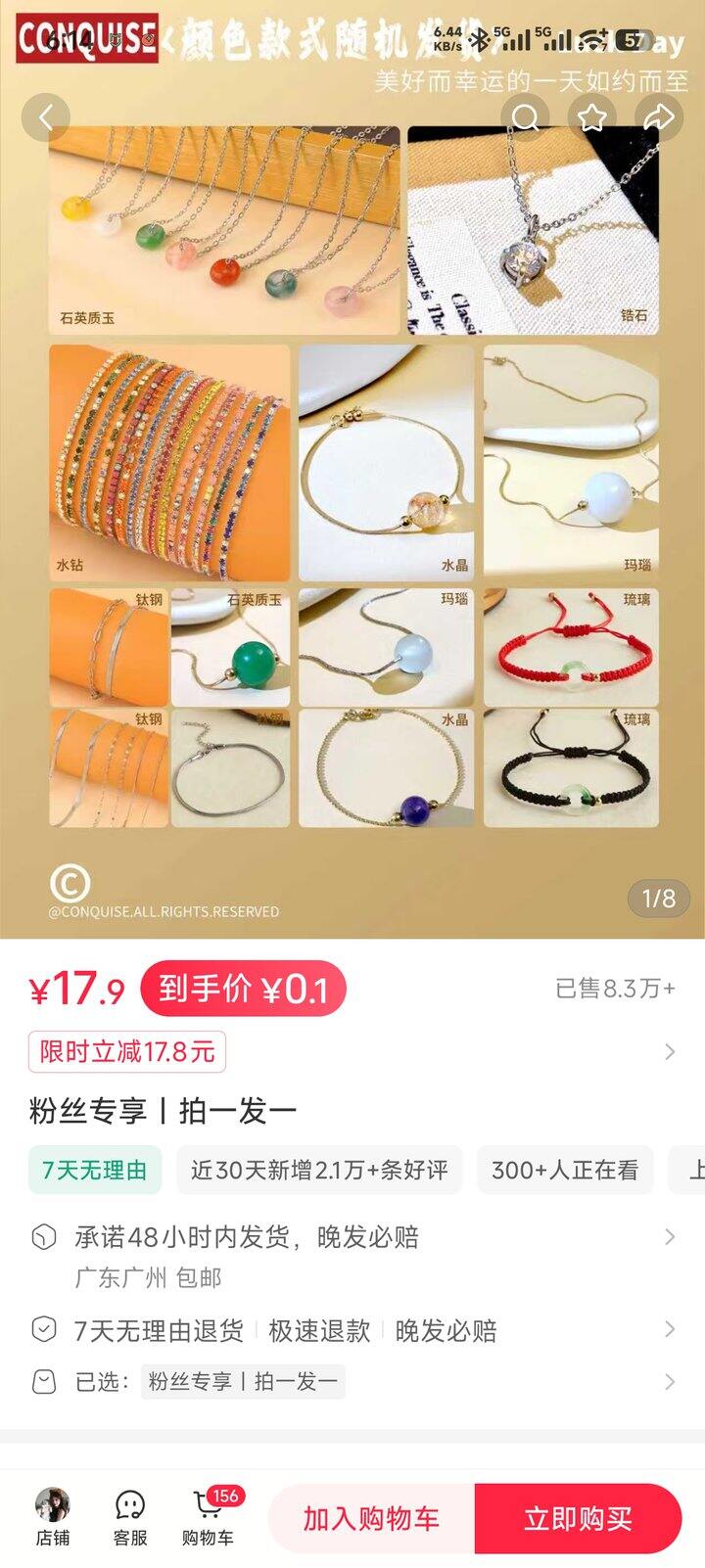 有人说这种可能是商家在凑发货单数,好维持低价邮费,那就帮老板扩散一下。我收到一条弹力水钻手链,即使在pdd也得卖个几块钱,0.1元成本期待一个快递的到来,不亏,好玩。