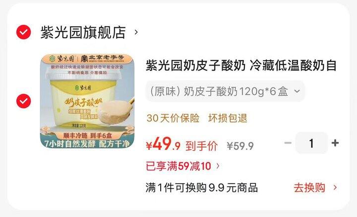 紫光园奶皮子酸奶6盒💰49.9