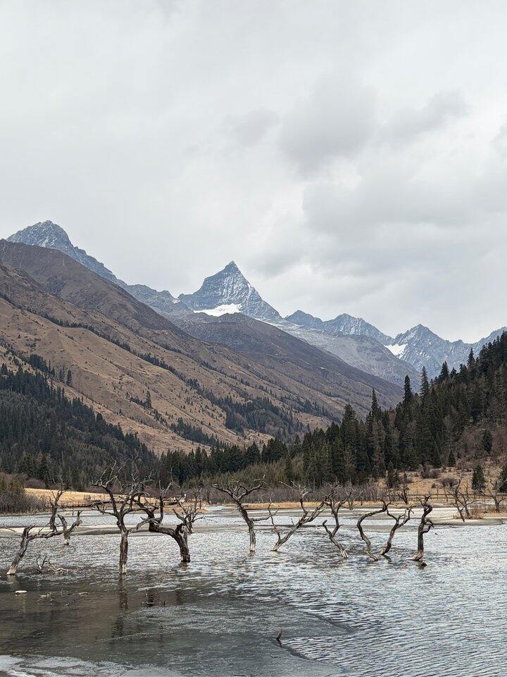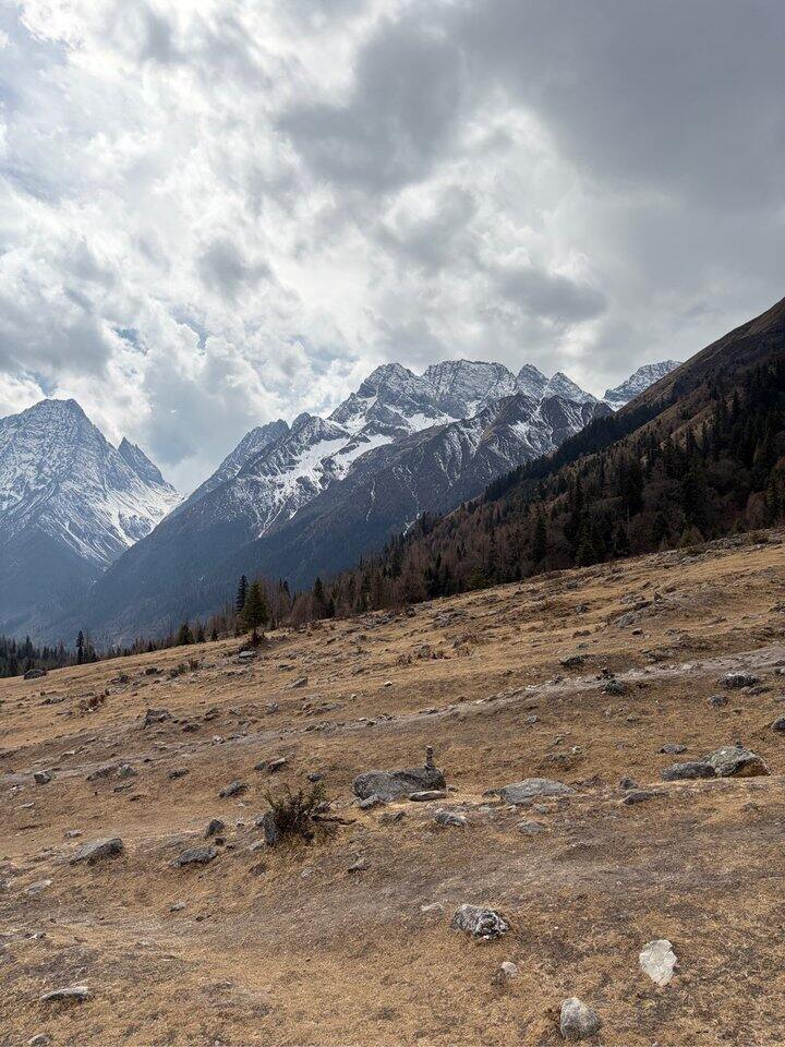 冬天且没雪的四姑娘山光秃秃的,光线也不太好,不过也很美啦,景区内摆渡车两站之间太远了,想徒步时间又不太够,只能在每个站点附近小玩,没有领略四姑娘山真正的美,有机会还要再去。我们晚上刚离开四姑娘山半个小时,那边就下雪啦,在📕上看到第二天的景色,比我去的那天好看些。