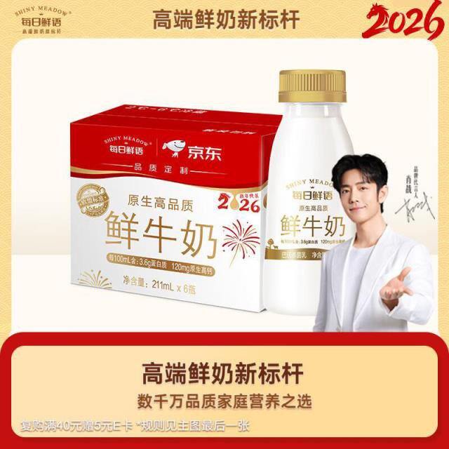 自营每日鲜语 3.6g鲜牛奶 211ml*6瓶Plus叠政府补贴凑后仅【46.5】,折2.5/瓶!!好价