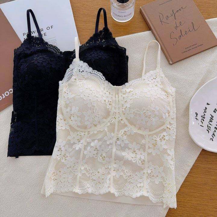 古妃春夏法式性感鱼骨蕾丝吊带美背女带胸垫聚拢显瘦打底内搭上衣