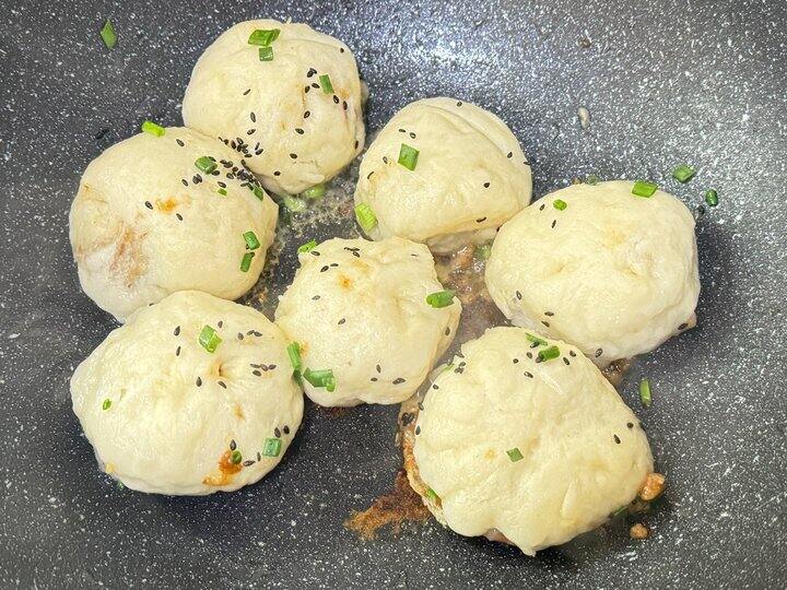 ⬇️水煎包,和做小笼包一模一样,就是煮法不一样而已。