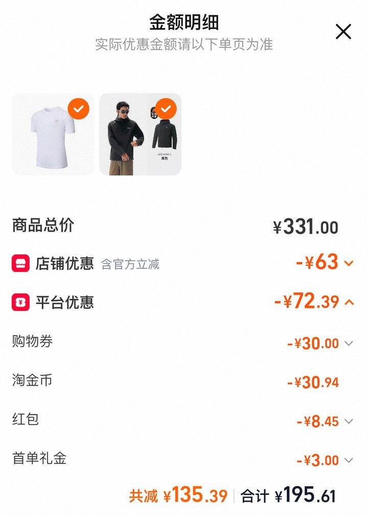 ❷T恤前两个选项任拍一(限部分尺码成立)