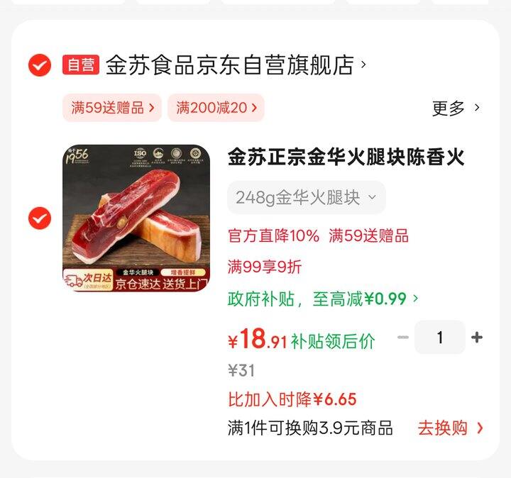 这个牌子火腿过年有不少姐妹买过礼盒送人,反馈蛮好的!现在京东自营有半斤装,自己吃很划算,才10几块钱~