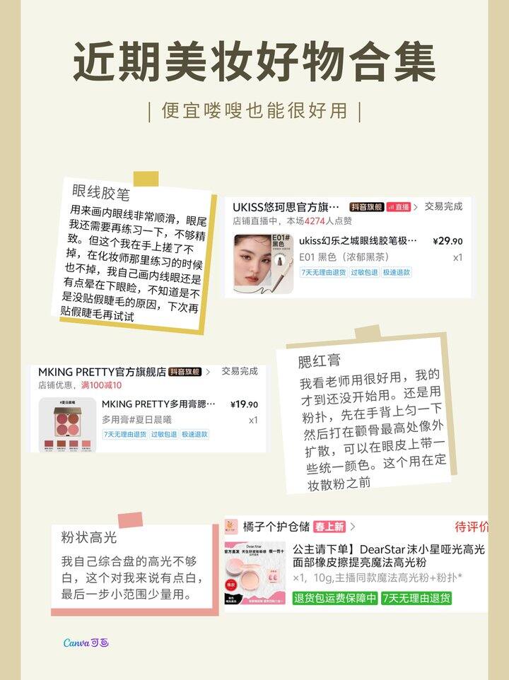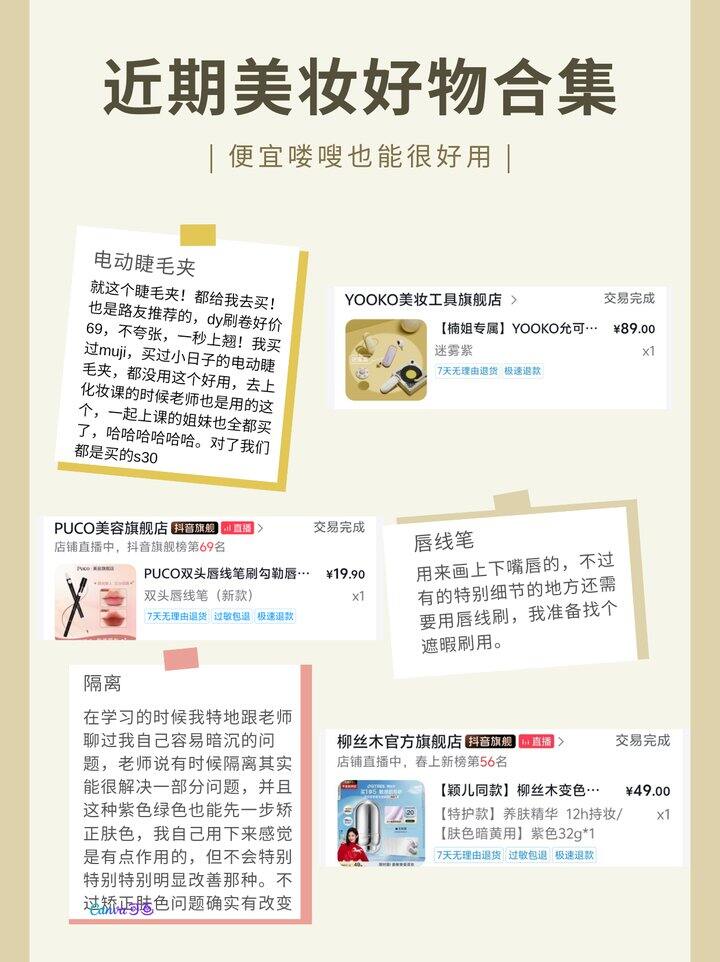 这次的产品主要就是上课的时候被老师种草的同款,有几个是我自己之前买的,都很便宜。