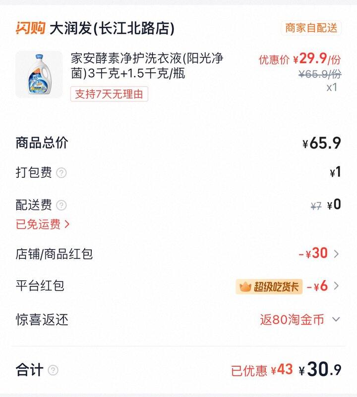 大润发,如有饿了么会员红包,叠加商品页面59-30券,9斤💰30.9,没有的话看看这边有没有红包可以叠加