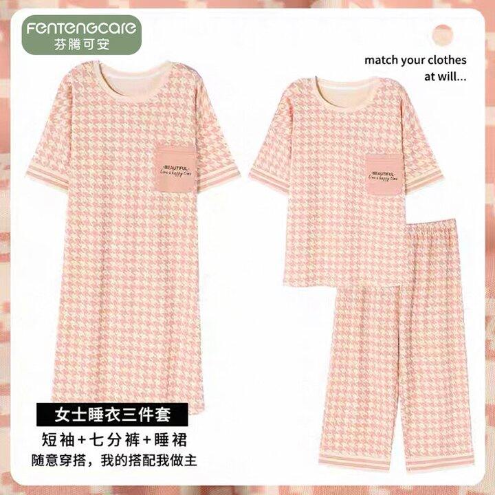 芬腾可安 短袖+短款+长裤家居服三件套女