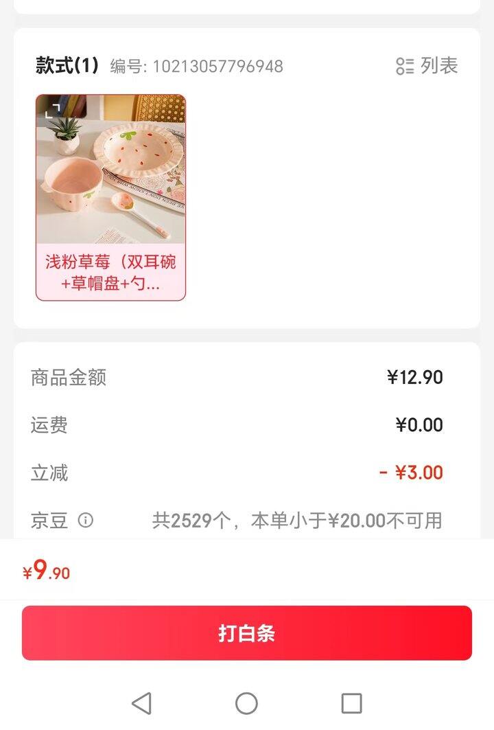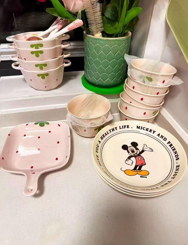 9.9💰 浅粉草莓3件套(双耳碗+草帽盘+勺子)