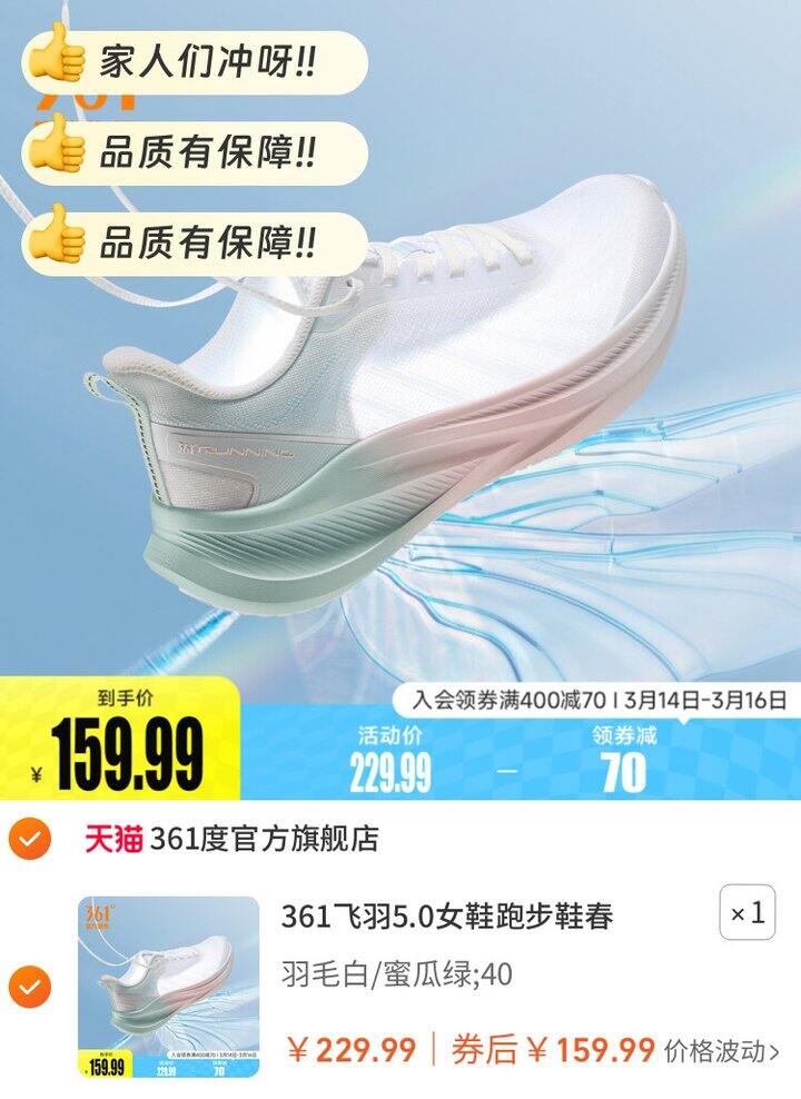 361飞羽5.0女鞋跑步鞋春夏新款网面透气薄款运动鞋轻便减震跑鞋女【包邮】