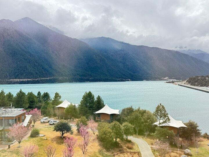 ⬇️本来要在湖边,太冷了,就在酒店开了一间小木屋,还有院子,开 party 很不错!