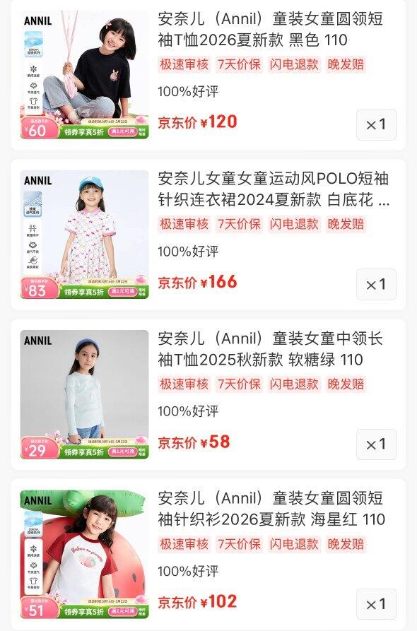 安奈儿童装五拆🈴集1️⃣圆領.短袖T恤💰43