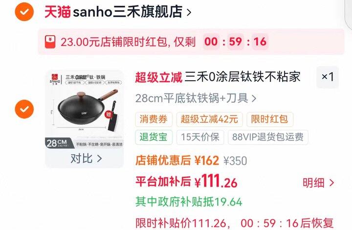 💰111 三禾0涂层有钛铁锅