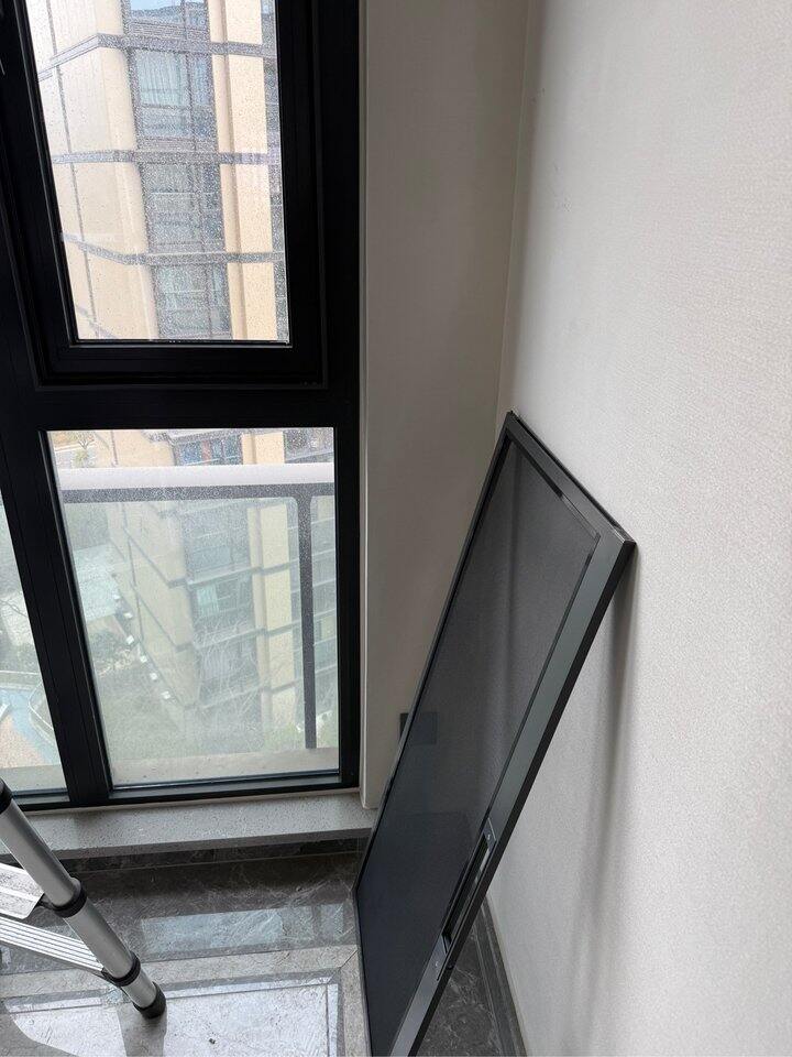 虽然纱窗有一个坏了,但是剩下的都已经装好了,我感觉还可以吧,虽然做尺寸的时候给我做错了一点,客厅的纱窗不能完全打开尺寸刚好卡在窗帘盒的位置,但是不影响使用,实在不行的话,我可以把整个纱窗卸下来,所以对我来说也不是很大的影响