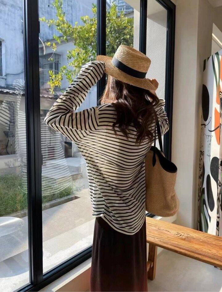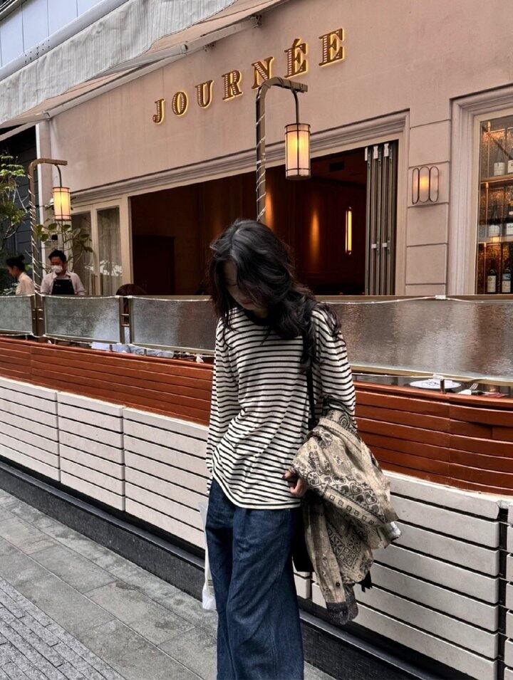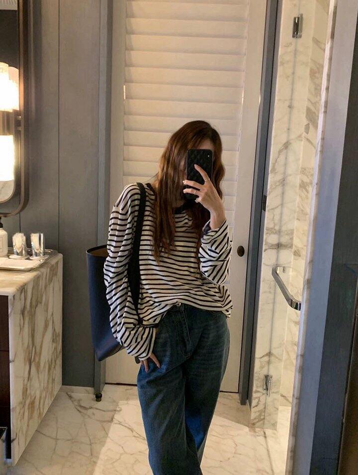 慵懒长袖条纹T!💰69