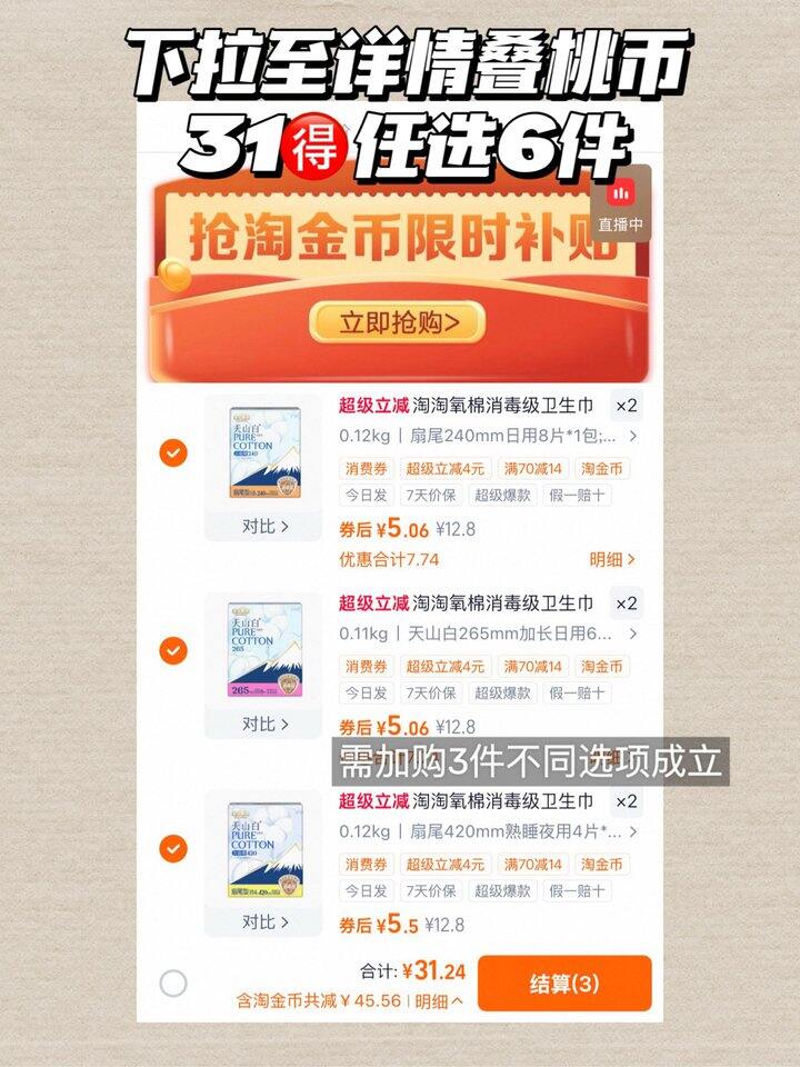 淘淘氧棉卫生巾!💰5