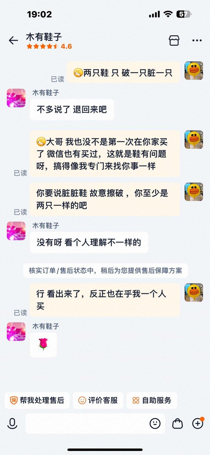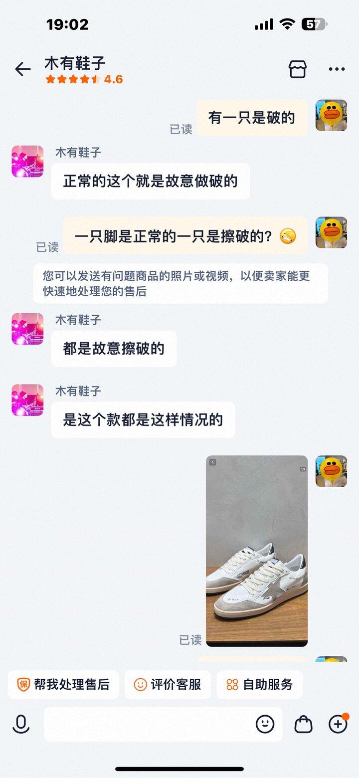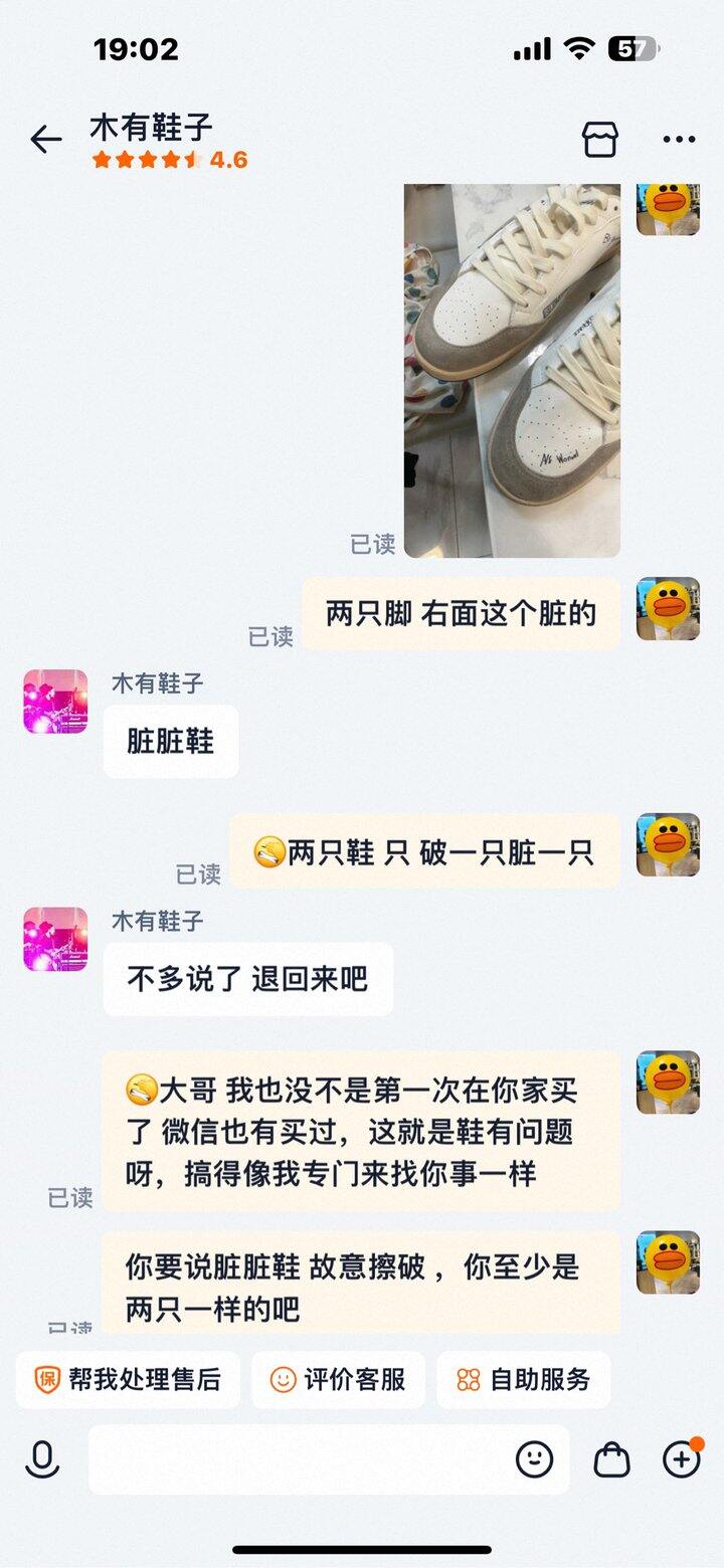 第一时间联系卖家,得到的是“正常,故意做破的”,“脏脏鞋”“不多说了,退回来吧”“每个人理解不一样”