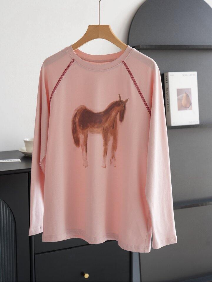 宋轶同款粉色小马打底T!💰69