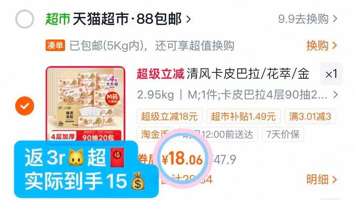 12💰清风卡皮巴拉20包*90抽