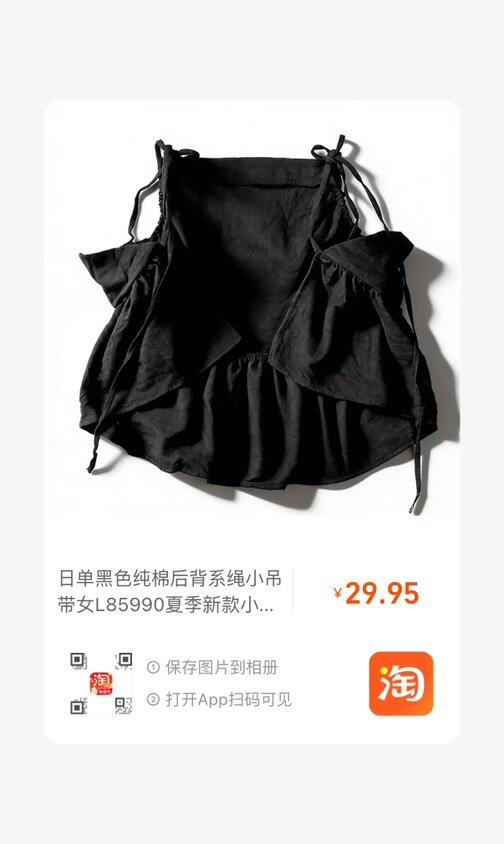 HU591 「日单黑色纯棉后背系绳小吊带女L85990夏季新款小众文艺清新风背心」