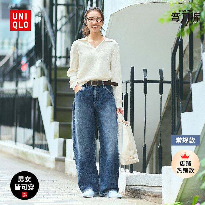 Uniqlo女装男装宽松廓形牛仔裤/弯刀镰刀裤子高腰水洗产品479000
