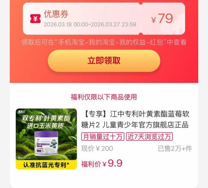 ‼️限时礼金💰9.9/瓶🉐30粒,叶黄素酯蓝莓软糖🍬江中官旗