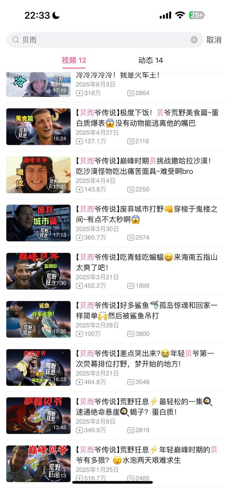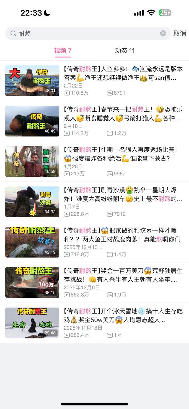 哈哈我看完传奇耐熬王系列了,超好看!剪辑版的荒野求生,大概是一季的荒野求生,他剪辑成一集大概三四十分钟这样,好看!解说很好玩哈哈!