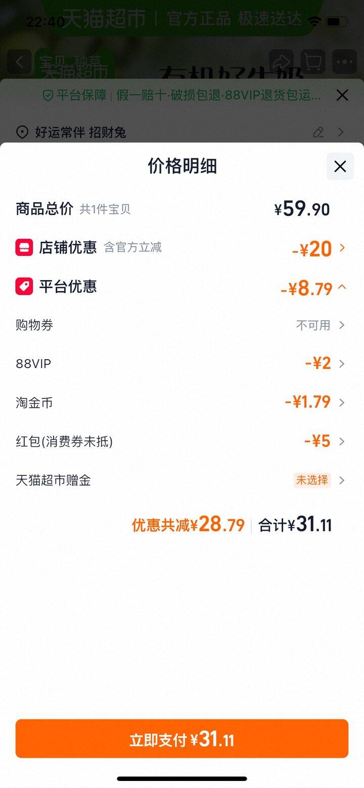 淘金币抵扣6元多。到手26+元