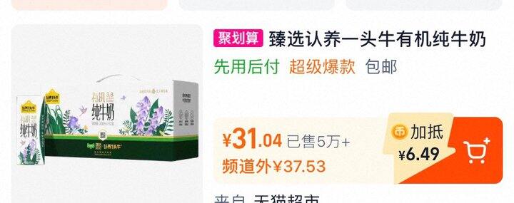 纯牛奶3.8g➽26+元(猫超)