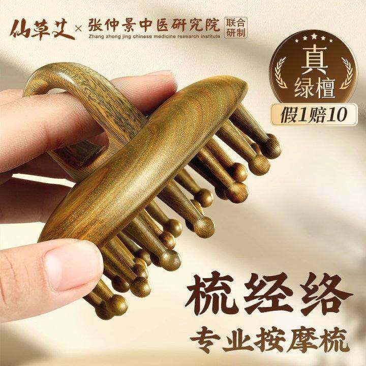 天然绿檀木按摩梳子头皮经络梳头牛角脱发头疗器防刷头部疏通神器