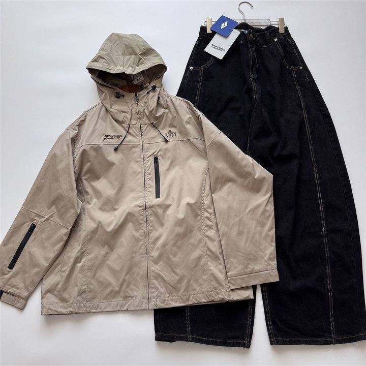 灰咖色连帽冲锋衣外套(718)