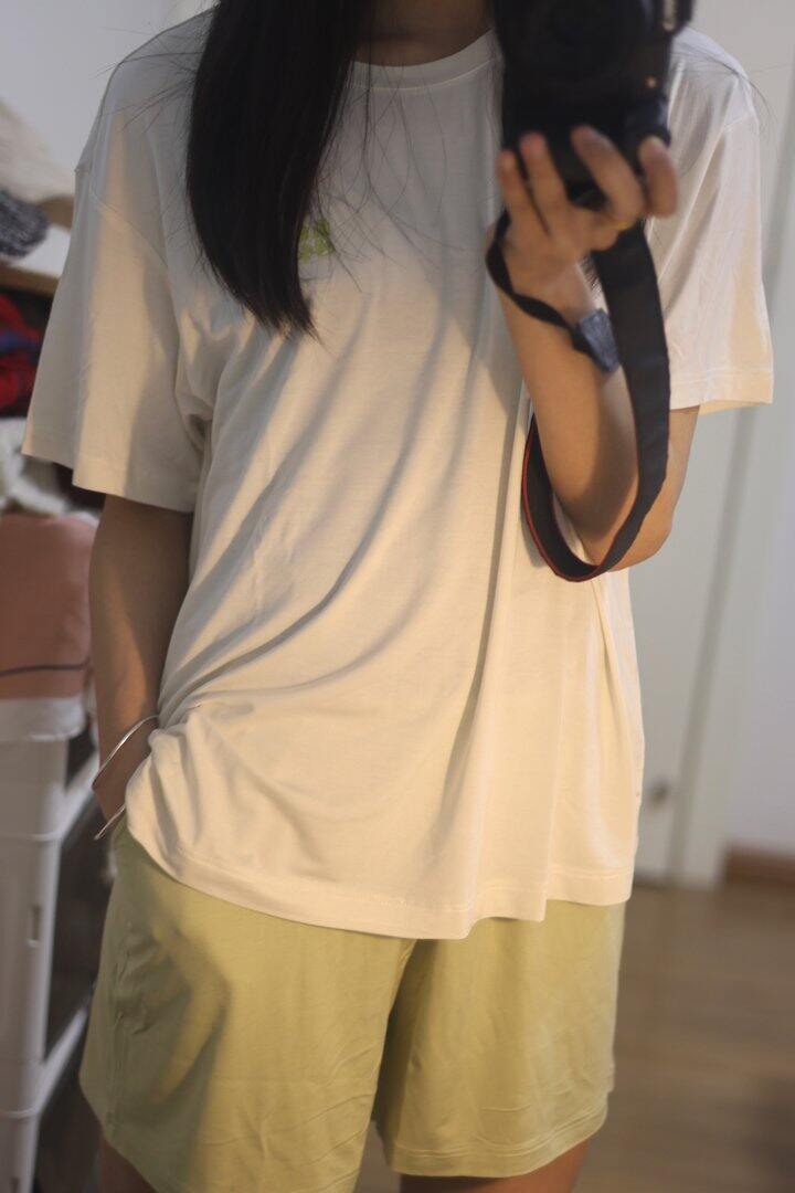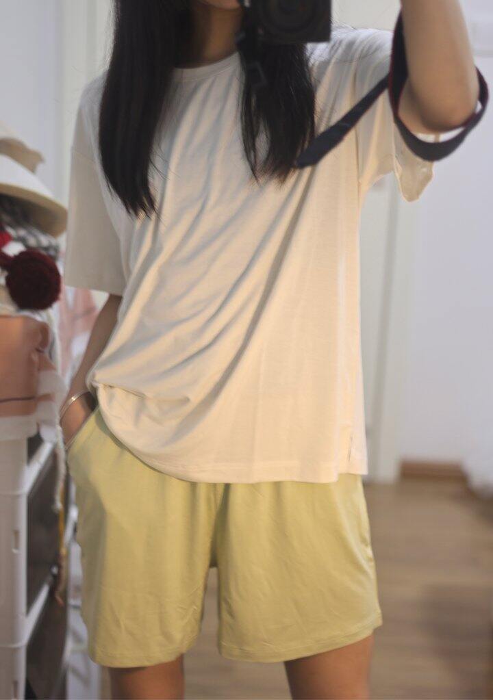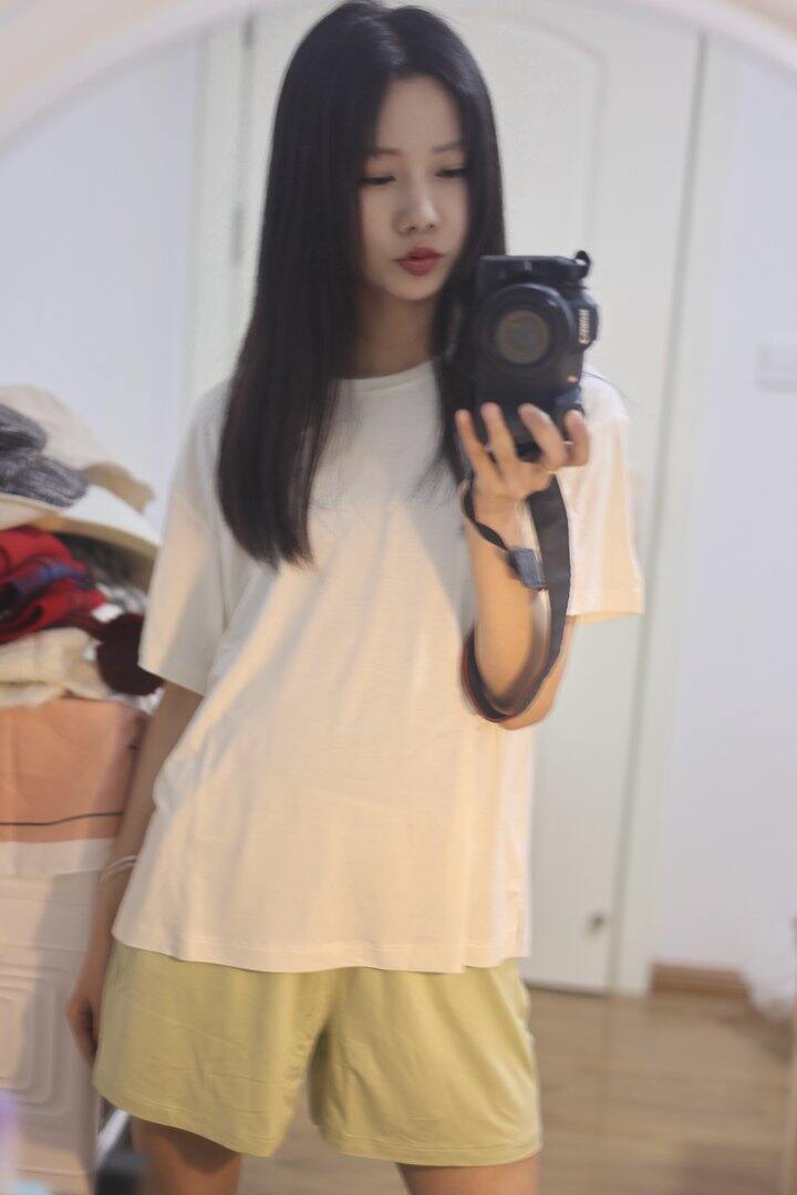 白T+浅黄绿短裤的配色太温柔了,奶fufu的很显气色,日常在家穿或者下楼取快递都完全不尴尬。面料是那种软软糯糯的亲肤感,贴身穿一点不闷汗,夏天穿也很透气。版型宽松不挑身材,对微胖姐妹也很友好,活动起来毫无束缚感。