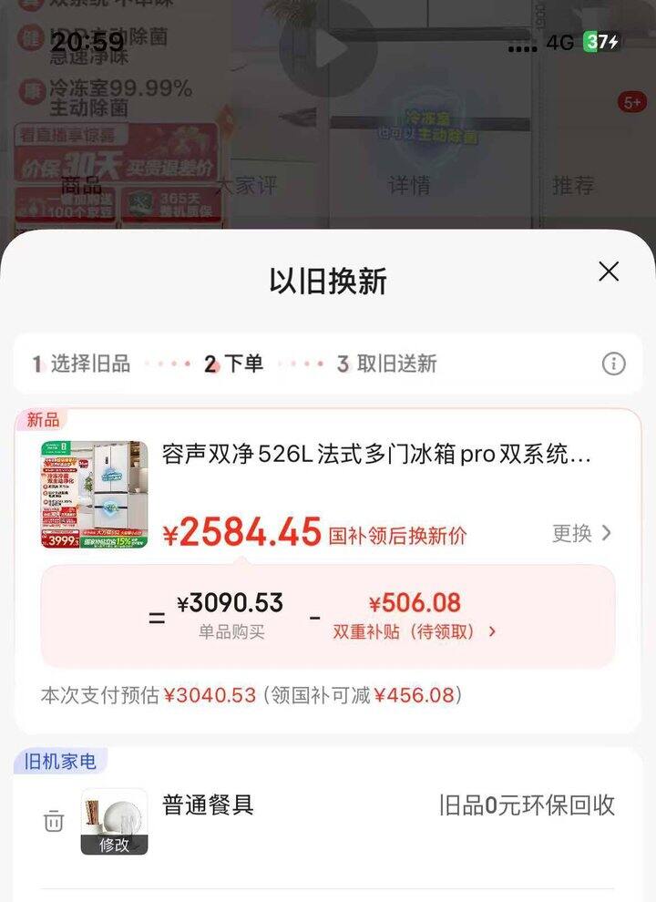 容声双净526L法式多门冰箱pro双系统循环一级能效风冷无霜,以旧换新后,2584