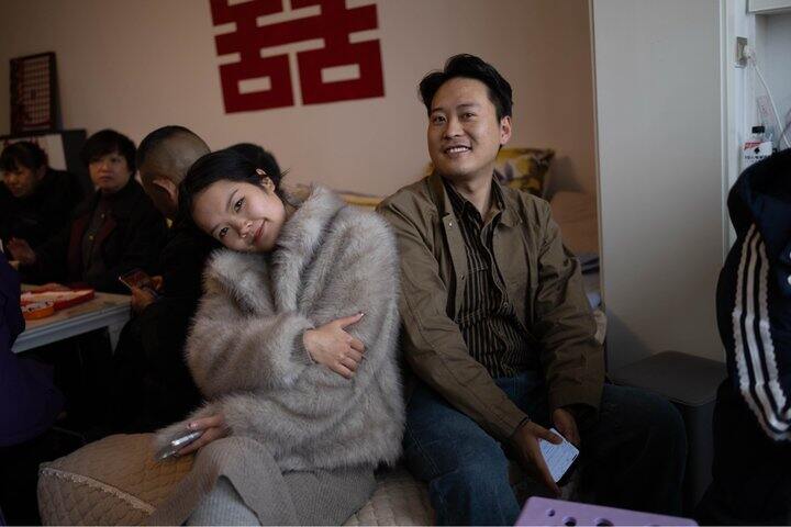 发现自己的头发好多,定睛一看,是后面嬢嬢的半个头。