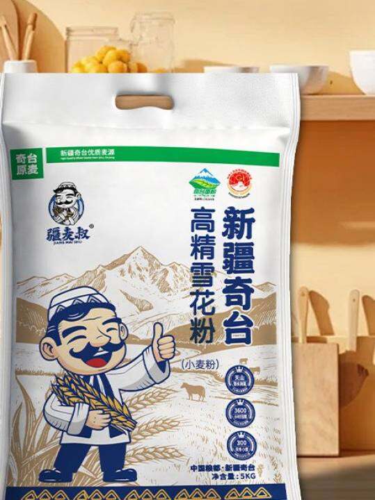 疆麦叔新疆奇台高精雪花面粉优质小麦中高筋包子馒头家庭通用5kg