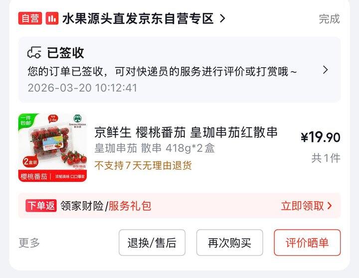 今天收到了,很新鲜,好吃,番茄味很浓,印象中这种味道上次闻到还是在乡下老家自己种的小番茄刚摘的时候